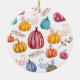 Autumn celebrations rustic pumpkins watercolor drawing ornament with custom color background.