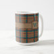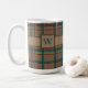 A soft raw umber base is crisscrossed by bands of port wine red, bright autumn orange, and rich jungle green in this pleasant plaid that combines trendy colours in a classic and cozy pattern perfect for fall. This mug is available in a variety of colours, sizes, and styles including travel mugs and steins. Customize the monogram on this mug with your initial to mark it as your own.
