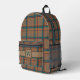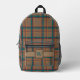 A soft raw umber base is crisscrossed by bands of port wine red, bright autumn orange, and rich jungle green in this pleasant plaid that combines trendy colours in a cozy pattern perfect for fall. Customize the initial on the front pouch of this backpack with your own monogram to make this accessory uniquely yours.