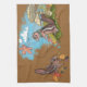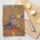 A cute woodland chipmunk flies a leaf kite enjoying the windy fall weather! beautiful and whimsical kitchen decor for the holidays, great for family thankgivings and gifts for nature lovers! Art copyright to Erin Cooper