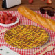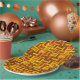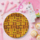 Paper party plates decorated with an autumn-coloured, ceramic effect pattern.