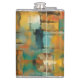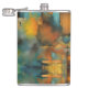 autumn colours, orange rust copper, gold mustard, teal blue turquoise, in grunge paint geometric abstract shapes