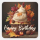 Autumn Cupcake with Colourful Fall Leaves Birthday Square Sticker
