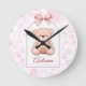 Autumn | Custom Pink Teddy Bear Nursery Design Round Clock