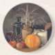 Autumn Decorations on Table, Pumpkin, Fruit, Drink Coaster