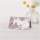 These wedding place cards feature an abstract leaves design in shades of dusty rose with placeholders for the table number and the bride and groom name initials as accents.