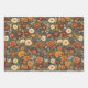 Beautiful autumn flowers and leaves in fall colours of burgundy, cream, orange, and russet combine to make a beautiful set of wrapping papers for any occasion.