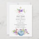 Sweet peas and pumpkins baptism invite with hues of pink, purple, violet and blue and elegant handwriting typography customizable to your event specifics.