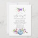 Sweet peas and pumpkins sip and see party invite with hues of pink, purple, violet and blue and elegant handwriting typography customizable to your event specifics.