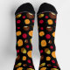 These colourful socks feature a vibrant autumn harvest pattern with pumpkins, berries, acorns, and chestnuts on a black background (customizable - click on Edit design). Great for the fall season!