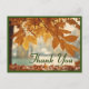 This beautiful Thank You Postcard feautures golden fall leaves gently hanging from a tree, set against a softly blurred background that evokes the peacefulness of an autumn day.