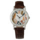 Enjoy the warm colours of the Fall season with this elegant wristwatch. The watch face is decorated with Autumn leaves in seasonal greens, browns and yellows. Personalize with a name for an extra individual touch.
