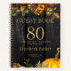 Beautiful rusty orange and dark burgundy autumn fall flowers and pumpkin borders with strings of golden twinkle lights over a dark brown barn wood background making a charming elegant 80 years birthday party guest book with a trendy handwriting gold typography script. +++++++++ Easy to personalize with your details! Suitable for traditional rustic | country | farmhouse | outdoor backyard family and friends gatherings.