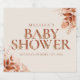 An elegant autumn fall baby shower design featuring chic terracotta typography and rustic floral foliage. Designed by Thisisnotme©