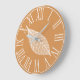 Get an elegant autumn style in your home with this white leaf skeleton and rustic orange background clock with white roman numerals.