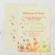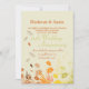 A light and airy invitation featuring flowers and falling leaves. Well-suited for any autumn celebration.