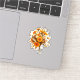 A vibrant autumn-themed sticker showcasing a bouquet of orange and yellow flowers with golden leaves, ideal for seasonal or nature-themed projects.