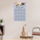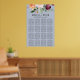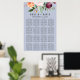 This autumn floral dusty blue seating chart poster is perfect for a fall wedding. The design features a stunning bouquet of blush, orange peach, and marsala burgundy flowers with pewter gray typography. This wedding poster includes enough room for up to 16 tables (160 guests). In addition to the placement of each guest, personalize this sign with the names of the bride and groom and the wedding date. This seating chart can be used for a wedding reception or any special event.