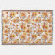 This image features a vibrant watercolor pattern of autumnal flowers and leaves. The background is a transparent white, allowing the viewer to focus on the intricate details of the floral arrangement. The flowers are primarily orange and yellow, with delicate petals and a lush, textured appearance. The leaves are a rich brown, adding depth and warmth to the composition. The overall effect is one of beauty and tranquillity, capturing the essence of the autumn season.