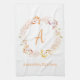 Kitchen towel with pretty hand painted watercolor floral wreath in lovely fall colours, personalized with your name and initial.