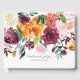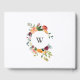 This pretty autumn-theme guest book features lovely watercolor floral. The front of the wedding guest book is adorned with a large fall flower bouquet of roses and dahlias in shades of burgundy, blush pink, burnt orange, and marsala. The couple's names are written in calligraphy lettering below the floral arrangement. On the back, a circle of flowers frames a custom monogram.