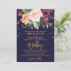 This autumn floral wedding invitation card is perfect for a fall wedding. The design features a stunning bouquet of blush, orange peach, and marsala burgundy flowers with faux gold foil typography and confetti.