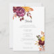 This autumn wedding invitation with detail enclosure features bold watercolor florals in burgundy and burnt orange—perfect for boho, rustic, or garden weddings.