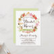 Whimsical bridal shower invitation featuring floral wreath in fall colour palette.