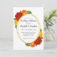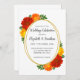 Autumn red, orange and gold florals bordering gold circle frame with eucalyptus and botanical greenery for a fall event