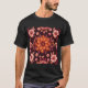 This is an Autumn Flowers T-Shirt. The floral design was created with generative art. The artwork features autumn flowers in autumn colours like gold, orange, burgundy and pink. The t-shirt shown is black. The t-shirt is unisex and can be worn by men and women. The t-shirt is made of comfortable cotton.