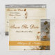 This rustic autumn floral save the date postcard, in late fall colours of gold and brown has three different types of flowers and vines on it, on a backdrop of grey weathered wooden boards and FAUX ivory parchment paper that matches the wedding invitation shown below. It would be perfect for a couple wanting to have a casual or informal rustic country wedding. All the text is customizable.****PLEASE NOTE if you change fonts, or the size of the font, some of the design and/or text may get cut-off. Everything will print as you see it on your monitor. I will not see your card, and Zazzle will NOT correct anything (typos, mis-alignment etc.). The text is all customizable. If you need help with this card, please email me BEFORE you place your order. If you require any other matching items, please email your request to niteowlstudio@gmail.com.