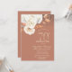 A modern, chic and glamorous invitation with string lights, glitter bokeh ombre, and autumn flowers.