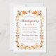Orange, brown, yellow, a touch of green on this warm but modern thanksgiving dinner invitation. All text is customizable; edit it to suit your event (dinner, potluck, charity event, fundraiser, etc).