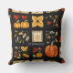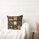This throw pillow showcases a folk art quilt-style patchwork, filled with rustic and autumnal motifs. Arranged in a grid of squares and rectangles, it features pumpkins, falling leaves, birds, hearts, and stars, all rendered in a cozy primitive style. The warm earthy colour palette of orange, brown, gold, black, red, and cream creates a harvest-inspired aesthetic perfect for autumn, Thanksgiving, farmhouse décor, and country living. With visible stitching details and a homespun charm, this pattern embodies the traditional, handmade look of rustic quilting while celebrating the season’s bounty.