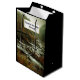 Gift bag with a nature photograph. Moody and beautiful landscape. A secluded stone bridge beside a lively river with a forest and mountains surrounding the area.