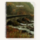 Spiral notebook with a nature photograph. Moody and beautiful landscape. A secluded stone bridge beside a lively river with a forest and mountains surrounding the area.