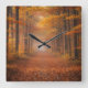 Cozy autumn forest wall clock with golden and orange leaves. A warm and peaceful timepiece for seasonal home decor