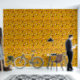 Autumn foxes on orange wallpaper