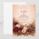 Inspired by rich autumn florals and romantic seasonal palettes, this wedding design features layered roses, dahlias, and soft foliage in warm rust, blush, and cream tones. The painterly floral border frames the layout beautifully, creating a refined yet inviting atmosphere that feels both classic and celebratory.