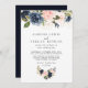 Compliment your classic wedding with this autumn gold blue pink floral back and front wedding invitation. The design features gold, pink, blush, blue and navy flowers with green leaves.