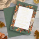 This elegant and modern wedding invitation features a beautiful frame of hand-painted watercolor burnt orange and terracotta leaves, cream and beige dahlias, and beautiful rust-coloured roses on a sage green background printed in real gold foil. Find matching items in the Sage Autumn Romance Collection.