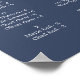 This autumn greenery navy horizontal alphabetical seating chart is perfect for a fall wedding. This horizontal sign can be used to organize your guests alphabetically or by table number by changing the headings. The modern rustic design features navy blue, sage green and gold leaves with sprigs of dark blue flowers. This wedding poster includes enough room for up to about 100 guests. Make room for more (or less) guests by clicking the "customize" button and decrease or increase the size of the font. In addition to the placement of each guest, personalize this sign with the names of the bride and groom and the wedding date.