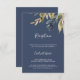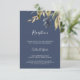 This autumn greenery navy wedding reception insert card is perfect for a fall wedding. The modern rustic design features navy blue, sage green and gold leaves with sprigs of dark blue flowers. Personalize this detail enclosure card with your reception information and include your wedding website address too!