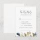 This autumn greenery song request RSVP card is perfect for a fall wedding. The modern rustic design features navy blue, sage green and gold leaves with sprigs of dark blue flowers. Build your wedding guest list and your dance floor song list all at once! This wedding response card conveniently asks guests if they'll be able to attend your wedding, and also what song will get them to dance.