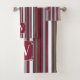 Autumn Harmony Stripes – Burgundy, Green, and Grey Bath Towel Set