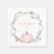 Chic autumn harvest gender neutral baby shower napkins feature mom's name and date in trendy handwritten script typography encircled by a wreath of watercolor orange and white pumpkin and green leaves. Customize with the words Happy Thanksgiving if you like. Also perfect for Thanksgiving day dinner with a blue theme or celebrating Canadian Thanksgiving. To see more designs like this, visit VG Invites on Zazzle to see my complete line.
