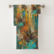 Autumn Harvest Teal Rust Gold Abstract Bath Towel Set