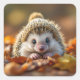 Autumn Hedgehog With Knitted Cap Square Sticker