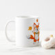 Coffee mug shown with a cute autumn leaves fox print with text of Hello Fall.