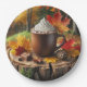 Autumn Hot Chocolate On Tree Stump Paper Plate